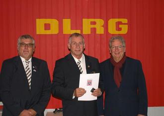 Der Erste Kreisbeigeordnete Jörg Sauer hat in einer Feierstunde im Vereinsheim dem Vorsitzenden der Ortsgruppe Selters der Deutschen Lebensrettungsgesellschaft (DLRG) Jörg Ehlig den Ehrenbrief des Landes Hessen überreicht. Diese hohe Auszeichnung wird für besonderes ehrenamtliches Engagement verliehen. Jörg Sauer erklärte, warum Jörg Ehlig den Landesehrenbrief unzweifelhaft verdient hat. Er ist seit mittlerweile 50 Jahren in der DLRG aktiv und hat mittlerweile seit einem Vierteljahrhundert den Vereinsvorsitz inne.