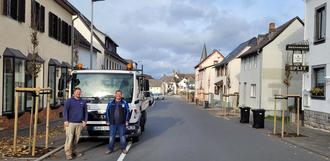 Auf dem Foto freuen sich (v.l.) Aarne Moog und Pascal Dasch über die Fertigstellung der Baumallee in der Brunnenstraße im Ortsteil Niederselters.