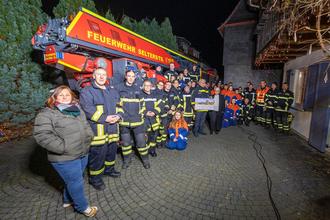 Im Nachgang zur Übung freute sich die Leiterhin des Pflegedienstes, Heidi Pauli, einen Scheck in Höhe von 3000 € überreichen zu dürfen. Anlässlich ihres 30jährigen Firmenjubiläums ein Dank an die Feuerwehr für ihren engagierten Einsatz in der Gemeinde – eine Geste, welche mit großer Dankbarkeit, Freude und einem spontanen Applaus entgegengenommen wurde. Ein kleiner Imbiss rundete das Übungsszenario ab und die weihnachtliche Deko ließ schon ein wenig Vorfreude auf Weihnachten aufkommen.