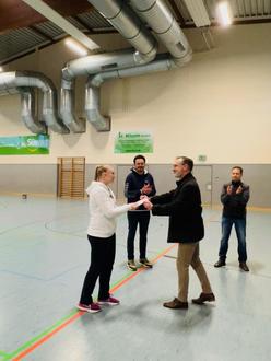 Katharina Ehlers konnte einen Scheck in Höhe von 500€ für die Trainingsarbeit im Inklusionsbereich entgegennehmen. Der Betrag wird sinnvoll für weiteres Trainingsmaterial wie Blindentennisbälle, Trainingsbedarf für Rollitennis und v.m. verwendet. Das Trainingsangebot ist weiterhin für alle Menschen mit Handicap eine kostenfreie Möglichkeit, den Sport mit der gelben Filzkugel zu erlernen.