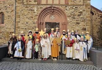 Seit Weihnachten waren viele Kinder und Jugendliche in der Pfarrei St. Peter und Paul Bad Camberg bei jedem Wetter - Sonne, Regen oder Schnee - in den Kirchorten unterwegs unter dem Motto "Erhebt Eure Stimme! - Sternsingen für Kinderrechte". Als Heilige Drei Könige brachten sie den Weihnachtssegen in die Häuser. Pfarrer Wichmann verglich die jungen Menschen mit Influencern, die über den eigenen Tellerrand hinausblicken: Durch das Sammeln werden Projekte zur Durchsetzung und Stärkung von Kinderrechten weltweit gefördert. So bringen die Sternsinger*innen nicht nur den Segen, sie werden auch zum Segen für unzählige Kinder weltweit!