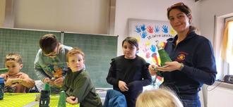 Betreuerin Corona Rieth unterstützt die Löschküken beim basteln der Figuren