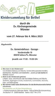 Evang. Kirchengemeinde Münster - Kleidersammlung für Bethel vom 27. Februar bis 04. März 2023