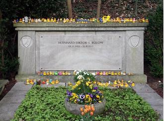 In Erinnerung an den berühmten Dialog der beiden Männer in der Badewanne zieren zahlreiche Quietsche-Entchen das Grabmal des Komikers Loriot in Berlin.