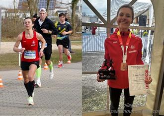 Dann wurde es ähnlich wie beim Marathon, der 42,195 km umfasst, hart – nur, dass diesmal noch 8 km mehr zu absolvieren waren. Friederike musste das Tempo etwas herausnehmen, konnte aber trotzdem ihren Vorsprung auf die viertplatzierte Frau vergrößern. „Die letzte Runde zog sich endlos und ich war dann einfach nur froh, dass es vorbei war. Die zusätzlichen 8 km machen im Vergleich zur Marathondistanz einfach einen riesengroßen Unterschied. Es war mit das Anstrengendste, was ich bisher gemacht habe und trotzdem hat es zu jeder Zeit so viel Spaß gemacht!“, berichtete sie begeistert von ihrer neuen Lauferfahrung.Friederike blieb mit ihrer fantastischen Zeit von 3:28:20 h 9 Minuten unter dem bisherigen Streckenrekord. Sie lief als drittschnellste weibliche Teilnehmerin über die Ziellinie und wurde überlegen mit 11 Minuten Vorsprung Deutsche Meisterin ihrer Altersklasse W45.