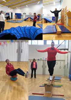 Am Ende des Lehrgangs wurde eine Bewegungslandschaft aufgebaut und die Teilnehmerinnen probierten die Übungen selbst aus.