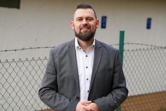 Bürgermeister Thomas Henfling berichtet vor der Trinkwassergewinnungsanlage in Mottgers