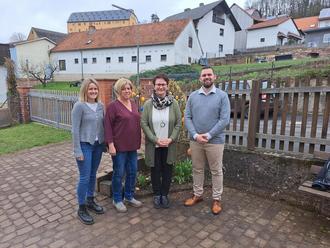 Unser Bild zeigt v.l.n.r.: Personalratsmitglied Laura Pecher, Erzieherin Edith Müller-Trampler, Christa Müller und Bürgermeister Thomas Henfling