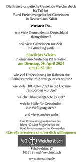 Nützliches Wissen in einer 50 minütigen Präsentation am Dienstag, 09. April um 19.30 Uhr in der Freien evangelischen Gemeinde Weichersbach, Schulwaldstr. 17.