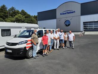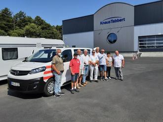 In Vorbereitung auf ihren Einsatz mit dem Bürgerbus absolvierten die ehrenamtlichen Fahrerinnen und Fahrer ein Fahrsicherheitstraining, das Gerhard Brink von der Deutschen Verkehrswacht Fulda (vierter von links) leitete. Für das Training hatte die Knaus Tabbert AG ihr Betriebsgelände in Sinntal-Mottgers zur Verfügung gestellt.