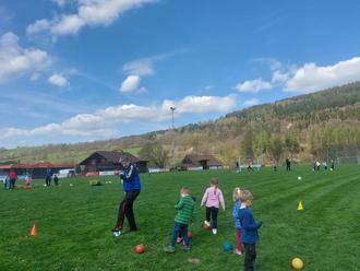 Mit viel Geschick zeigten die kleinen Kicker ihr Können an verschiedene Techniken mit dem Ball. Natürlich durfte auch ein Fußballmatch nicht fehlen, bei dem die Freude über viele Tore groß war. Stolz nahmen die Kinder am Ende des Vormittags ihre Urkunden entgegen.