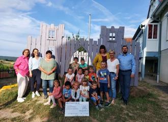 Spendenübergabe in der Zwergenburg (von links nach rechts): Manuela Oehmen, Marina Schröder, Karola Martin (Kindergartenleitung), Alice Schreiber, Karin Riffler und Bürgermeister Thomas Henfling (parteilos)