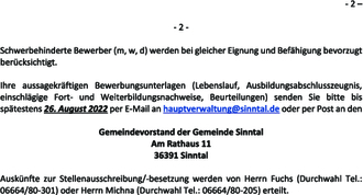 Vorheriger Artikel: Stellenausschreibung - Mitarbeiter (m/w/d) im gemeindlichen Bauhof