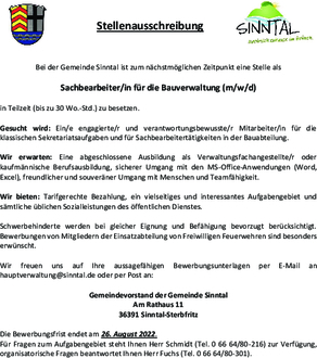Stellenausschreibung - Sachbearbeiter/in für die Bauverwaltung