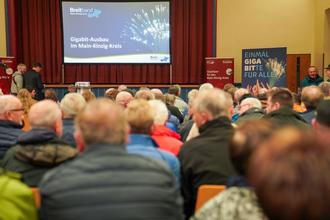 Mehr als 200 Bürgerinnen und Bürger nutzten die Möglichkeit, sich bei einer Infoveranstaltung in der Mehrzweckhalle Sterbfritz über den kostenlosen Ausbau des Glasfasernetzes in Sinntal zu informieren. Zusätzlich verfolgten etwa 400 Personen die Veranstaltung online im Live-Stream, das ist Rekord für eine Informationsveranstaltung der Breitband Main-Kinzig GmbH.