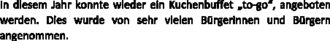 In diesem Jahr konnte wieder ein Kuchenbuffet „to-go“, angeboten werden. Dies wurde von sehr vielen Bürgerinnen und Bürgern angenommen.