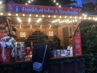 Die TAG Bergwinkel macht während des Weihnachtsmarktes am Stand der Frankfurt Touristik Werbung für Schlüchtern, Sinntal und Steinau a. d. Str.