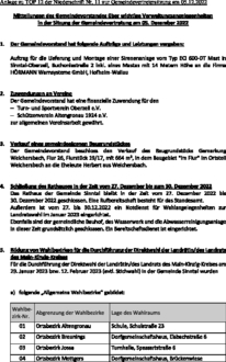 | 12. | Mitteilungen des Gemeindevorstandes über wichtige Verwaltungsangelegenheiten |