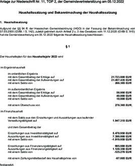Die von der Gemeindevertretung beschlossene Haushaltssatzung 2023 ist als Anlage dieser Niederschrift beigefügt.