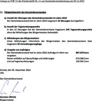 | Punkt 12: | Mitteilungen des Gemeindevorstandes über wichtige Verwaltungsangelegenheiten |