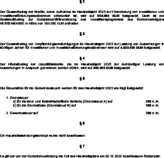 b) Haushaltssatzung 2023 mit Haushaltsplan und Anlagen