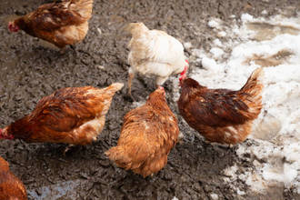 Was sie jedoch benötigen, ist einen sauberen, trockenen und zugluftfreien Hühnerstall als Rückzugsort und einen windgeschützten Unterstand im Freilauf, an den sie sich bei Dauerschnee und Nässe zurückziehen können. Generell macht Hühnern Nässe mehr zu schaffen als Kälte. Deswegen solltest du auch darauf achten, dass dein Freilauf frei von Pfützen und Matsch ist. Bei anhaltendem Schmuddelwetter kannst du nasse Bereiche im Freilauf zum Beispiel mit Hackschnitzeln auffüllen. Auch die Einrichtung eines zumindest teilweise überdachten Freilaufs - zum Beispiel mit einer Plane - ist eine gute Idee im Winter.