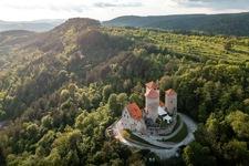 Luftaufnahme aus 2024 von der Ritterburg Normannstein in der Welterberegion Wartburg Hainich