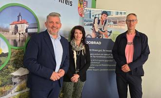 v.l: Landrat Thomas Ahke, Theresa Breitbarth (Fachdienstleiterin Personal im Landratsamt) und Johannes Ommeln (Area Sales Manager der JobRad GmbH)