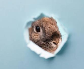 Der Optiker erklärt dem Häschen „Nein, ich verkaufe Brillen.“