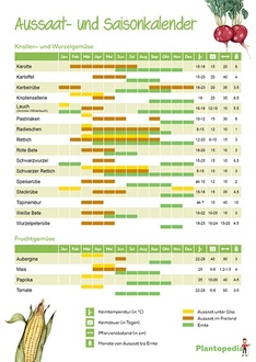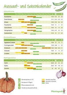 Im Plantopedia-Aussaatkalender finden Sie alle Informationen, die Sie für eine erfolgreiche Ernte benötigen - von der Keimtemperatur bis zum richtigen Pflanzabstand.