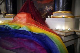 Der Regenbogen war das Symbol der Gedenkfeier, als Zeichen der Hoffnung und Brücke zwischen Vergangenheit und Zukunft.