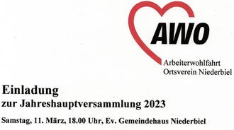 Der Vorstand lädt alle Mitglieder der AWO Niederbiel zur Jahreshauptversammlung 2023 recht herzlich ein.