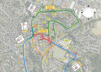 Für die Dauer der Bauarbeiten muss die Bergstraße in diesem Bereich vollständig gesperrt werden, daher wurde ein umfangreiches Umleitungskonzept erarbeitet, um die Erreichbarkeit der Gesamtschule und der Grundschule weiterhin zu gewährleisten. Das Umleitungskonzept kann dem beigefügten Straßenplan entnommen werden.