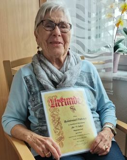 Reintraud Führich gehört dem Chor ebenfalls seit 75 Jahren an, davon mehr als 70 Jahre als aktive Sängerin.