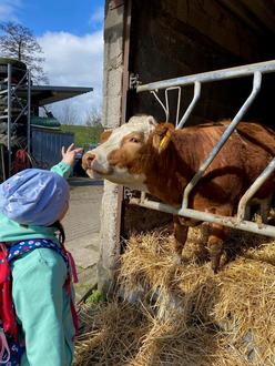 Familie Menz begrüßte zunächst die Gruppe ganz herzlich auf ihrem Hof, bevor es auch schon in den Stall ging. Dort angekommen wurden die Teilnehmenden von den Kühen begrüßt, die sie ganz überrascht anschauten. Schließlich war doch gerade Frühstückszeit. Doch alle verhielten sich ganz vorbildlich und ließen die Kühe vorsichtig an ihren Händen schnüffeln. Gleich daneben fanden sich die Schweinchen und ihre Ferkel. Es wurde gleich allen klar, dass Schweine ganz schön neugierig sind und die Kinder konnten sie ganz bedenkenlos streicheln. „Schau mal, wie das eine Ferkel hüpft - das ist ein richtiger Quatschkopf“, lacht eine Teilnehmerin. Einmal durch den Stall gelaufen, erblickten die Kinder schon die großen Traktoren, bei denen sie alle einmal das Lenkrad übernehmen durften. Bevor es wieder nach Hause ging, besuchte die Gruppe noch die Hühner und ihre Hähne. Die leben auf ganz großen Freiflächen auf dem Bauernhof und können sogar eingefangen und auf dem Arm gehalten werden. „Das ist besonders schön“, stellt ein Kind fest. Die frischen Eier, Fleisch und viele andere Köstlichkeiten können täglich im Hofladen erworben werden, den sich alle noch zum Abschluss anschauen konnten. Mit ganz vielen Eindrücken verabschiedeten sich die Ferienkinder von dem Hof und freuen sich schon darauf ihre neuen tierischen Freunde bald wieder zu besuchen.