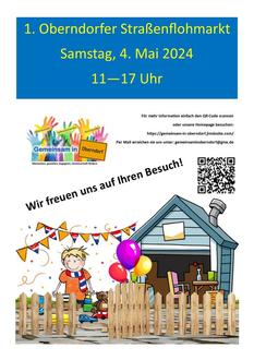 „Gemeinsam in Oberndorf“ führt am 4. Mai 2024 den 1. Oberndorfer Straßenflohmarkt durch. Auf der Route: Wolfsgasse – Hohe Straße – Im Espchen – Auf der Schanz – an der TVO-Halle – Jahnstraße und Hofstatt werden zahlreiche Stände in den Höfen und auf dem Parkplatz an der TVO-Halle mit Trödel aller Art zu finden sein. Gekennzeichnet sind die teilnehmenden Grundstücke mit Luftballons.