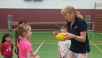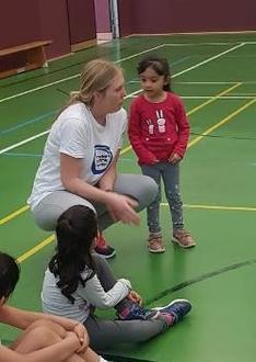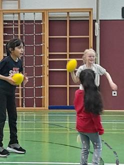 Zunächst empfing die Sport-Coachin - und ihr Helferteam - Kinder zwischen sechs und acht Jahren zu Spielen. Nach der individuellen bewegten Begrüßung ging es musikalisch mit dem „Körperteileblues“ weiter, bevor das Fangspiel „Zitronenmännchen“ erklärt wurde. Es fand sofort Gefallen und mit dem eigenartigen Wurfobjekt flitzten die Kids durch die Halle.