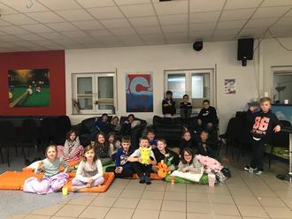 Also machten es sich auch in der dritten Ferienwoche 20 Kinder im Alter von 6-13 Jahren im Jugendzentrum auf Couchen und Matratzen bequem. Mit Limonade und frisch gemachtem Popcorn in der Hand, konnte der Osterfilm starten. Gemeinsam mit „HÜHNERHASE“ machten sich die Kinder auf eine abenteuerliche Reise. Dabei ist Hühnerhase halb Hase und halb Huhn und als Adoptivsohn von König Arthur, einem berühmten Kaninchenabenteurer, ist er selbst abenteuerlustig. Doch leider ist er viel zu tollpatschig. Erst auf einer Reise mit seinen Freunden lernt Hühnerhase seine speziellen Fähigkeiten zu schätzen.