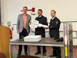 Kürzlich fand die offizielle Schlüsselübergabe für das neue MLF (Mittleres Löschfahrzeug) der Feuerwehr Niederbiel statt. Wehrführer Sarturnin Grzelinski und sein Stellvertreter Henrick Neumann präsentieren neben Bürgermeister Inderthal den symbolischen Schlüssel für das Foto.