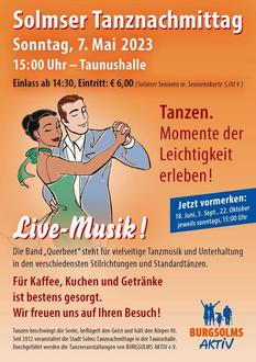 Der nächste Tanznachmittag mit der Band „Querbeet“ findet am 07.05.2023 in der Taunushalle statt.