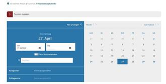 Die Termine werden von den zuständigen Mitarbeitern geprüft und in den Kalender freigegeben. Es ist möglich, dass diese bedingt durch den Freigabeprozess erst am nächsten Tag im Kalender erscheinen.