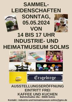 Am 5. Mai laden wir Sie herzlich zur Ausstellung “Sammelleidenschaften” im Industrie- und Heimatmuseum Solms ein.