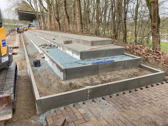 Der Zahn der Zeit hat seine Spuren hinterlassen im Erich-Mohr-Stadion. Wurzeln waren im Laufe der Jahre in die alte Stehtribüne eingedrungen, hatten dadurch die Oberfläche hochgedrückt und wellig gemacht und dadurch für Unfallgefahr gesorgt. Auch war die alte Stehtribüne nicht mehr so schön anzusehen.