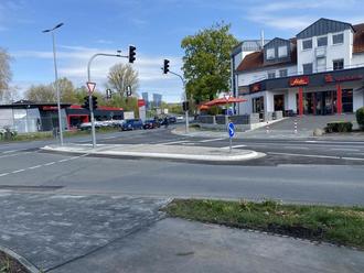 Die Baumaßnahme an der Einfahrt zum Gewerbepark konnte planmäßig abgeschlossen werden. Hier wurde ein ampelgesteuerter Fußgängerüberweg zur sicheren Überquerung für Fußgängerinnen und Fußgänger auf Höhe Sparkassenfiliale Solms/Georgshüttenplatz geschaffen und entsprechende Fahrbahnmarkierungen aufgebracht.