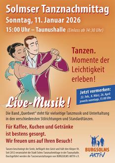 Veranstalter der Solmser Tanznachmittage ist die Stadt Solms, durchgeführt werden sie von Burgsolms Aktiv e. V.