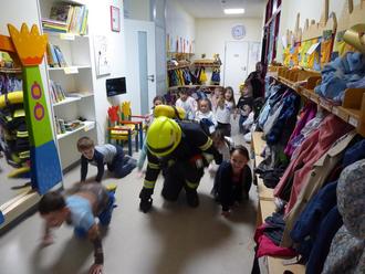 Glanz in den Augen und Begeisterung in der ganzen Gruppe war in der Vorschule als die Feuerwehr in den Kindergarten gekommen war.