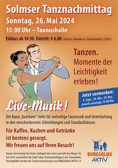 Der nächste Tanznachmittag mit der Band „Querbeet“ findet am 26.05.2024 in der Taunushalle statt.