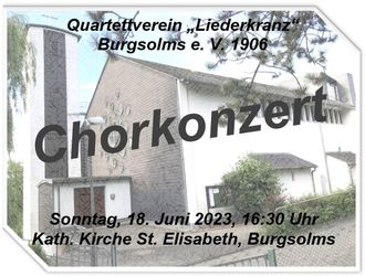 Unsere nächste Chorprobe für den gemischten Chor findet am Freitag, 9. Juni 2023 um 19:30 Uhr in der kath. Kirche Burgsolms statt.