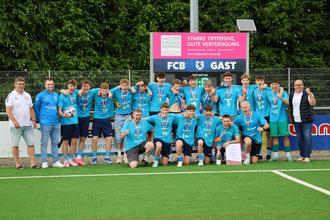 Hintere Reihe von links: Klassenleiter Peter Wiederhold, Andreas Bott, Tom Küster, Jan Wagner, Jakob Armbruster, Linus Volkwein, Maximilian Huber, Niklas Weidler, Dennis Schröder, Diego Diez Aparicio, Dorian Hildebrandt, Noah Bassl, Vincent Schmidt, Philipp Knaus, Benjamin Kräske, FC-Jugendleiter Heiko Didlapp