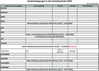 Die Sonderbelegungspläne können auch auf der Homepage der Stadt Solms unter: